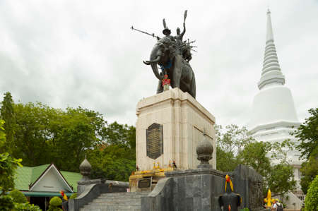 Suphan Buri, Thailand - August 19, 2011: The royal monument of King Naresuan the Great in front of the Don Chedi in Suphan Buri, Thailand. Built to commemorate the victory over the Burmese troops.