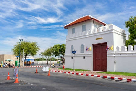 BANGKOK, THAILAND - JUNE 6, 2019 : Thanon Thai Wang street Back side of Wat Phra Kaew and Grand Palace in Bangkok, That is way past to Tha Tien pier and Thanon Maha Rat street.