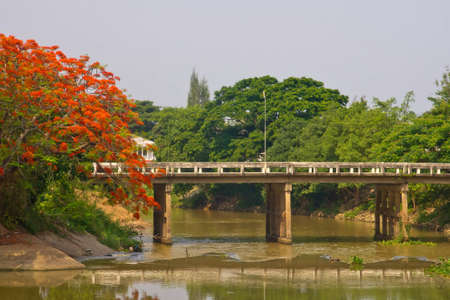 white bridge with low level river in Lampang, Thailand