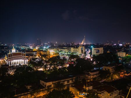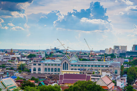 Bangkok Cityscape view from golden mount at wat saket temple Thailand.The landmark travel destination of bangkok city thailand