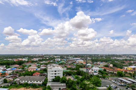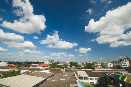 SURIN, THAILAND - MAY 25, 2020: The sky is blue and white clouds in Surin town.