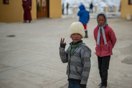 Spiti, Himachal Pradesh, India - March 24, 2019 : Photo of himalayan boy in spiti valley