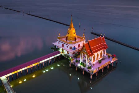Temple on the sea with twilight background in Thailand,Wat hong thong