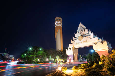 Beautiful Tower of Roi Et or Vote Tower 101 observatory in city, the symbol of local musical instrument, new Landmark in Roi Et Province, Thailand, on 8 October 2021