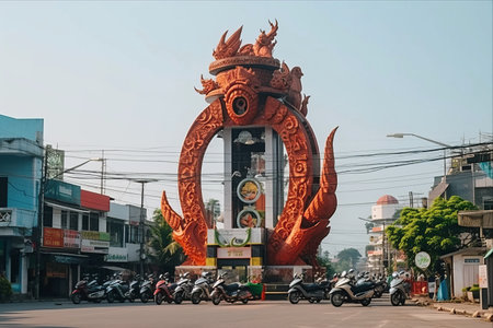 Amazing Naga Sculpture at Mekong Riverside Walking Street in Nongkhai, Thailand