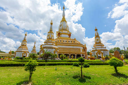 Beautiful architecture of buddha statue temple Wat Phrathat Nong Bua, Ubonratchathani, an iconic tourist attraction spot in Ubonratchathani, Thailand