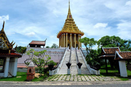 Nakhon Si Thammarat Province, THAILAND - June 26, 2022: Scenery of The famous temple named Wat That Noi in Nakhon Si Thammarat, Thailand. This temple is the travel destinations of Nakhon Si Thammarat province in southern Thailand.