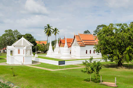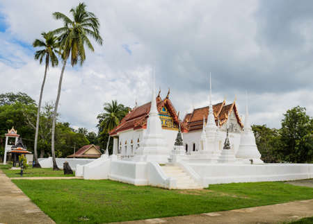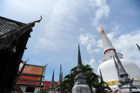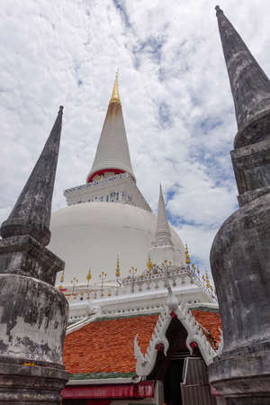 White Pagoda of Wat Phra Mahathat. Nakhon Si Thammarat, Thailand. On the day the sky is clear . Cloudy with a beautiful shape .