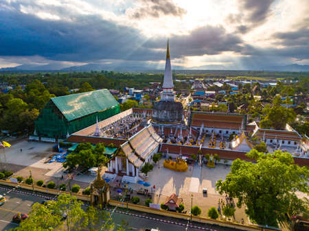 Wat Phra Mahathat Woramahawihan pagoda in the evening beautiful sky Nakhon Si Thammarat, Thailand, high angle