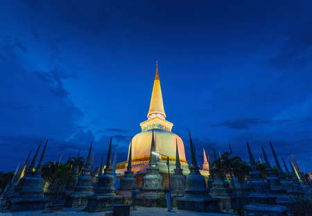 Ancient Pagoda in Wat Mahathat temple, night scene,Nakhon Si Thammarat ,Southern of Thailand