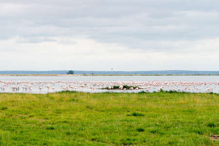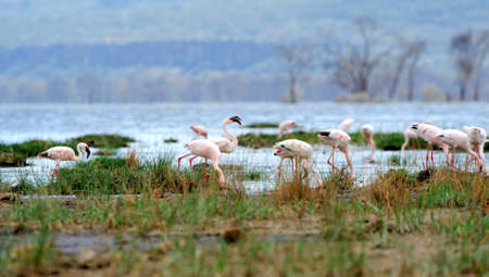 Beautiful flamingos on lake. Kenya, Africa