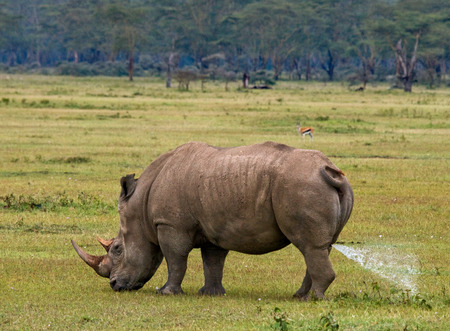 Rhinoceros in the savannah, Kenya. National Park. Africa. An excellent illustration.