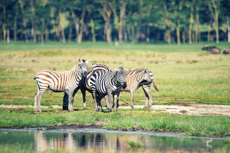 Burchell's zebras (Equus quagga burchellii) at Crescent Island Game Sanctuary on Naivasha lake, Kenya