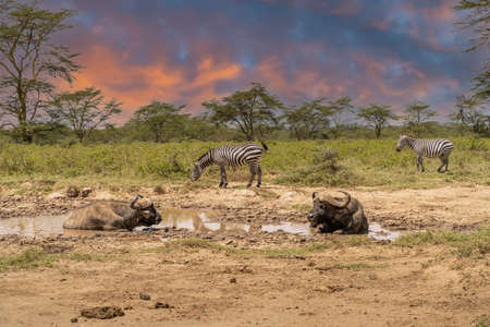 buffalo and zebra africa herds kenya masai mara.
