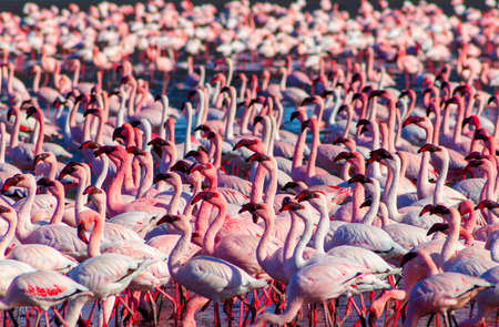 Flocks of pink flamingos in Lake Nakuru, Kenya, Africa.