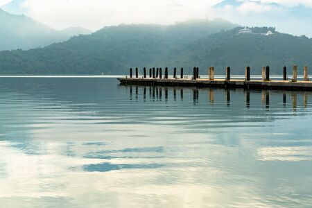 Landscape of famous Sun Moon Lake in the morning with mist in Taiwan, Asia.