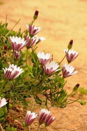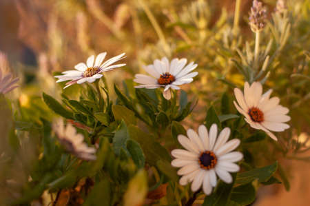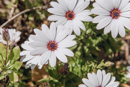 close-up white african daisy Osteospermum plant outdoor by the beach shot at shallow depth of field