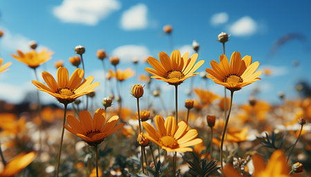 Vibrant yellow daisy blossoms in a meadow, nature summer beauty generated by artificial intelligence
