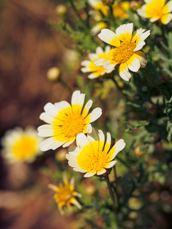 White daisy flowers closeup. Spring garden series, Mallorca, Spain.
