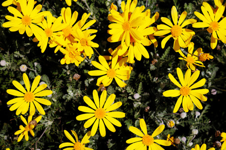 Flowers and buds of Euryops Pectinatus commonly known as Yellow Daisy