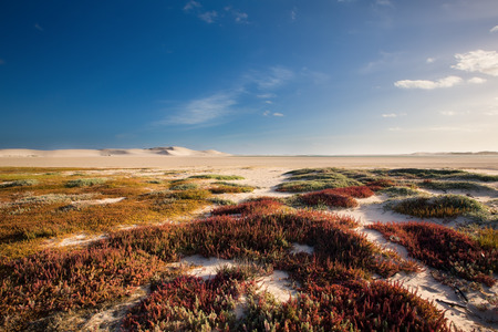 Glorious sand dune in the distance over an empty tidal lagoon