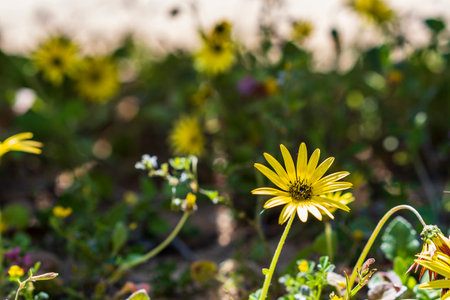 A field of yellow daisy flowers (selective focus), Namaqualand, South Africa
