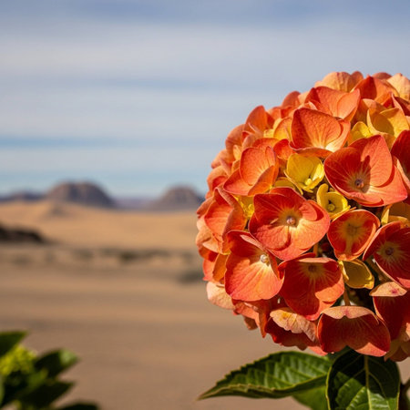 Orange and yellow flower in the desert, Morocco