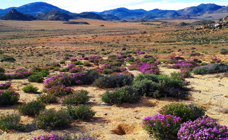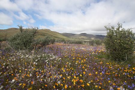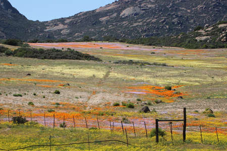 A carpet of colourful indigenous flowers on a farm at Nariep on the road to Groenrivier Green River, in the Namaqualand Region of the Northern Cape Provinve of South Africa