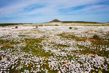 White and orange indigenous flowers at Skilpad in the Namaqua National Park near Kamieskroon in the Namaqualand region of of the Northern Cape Province of South Africa