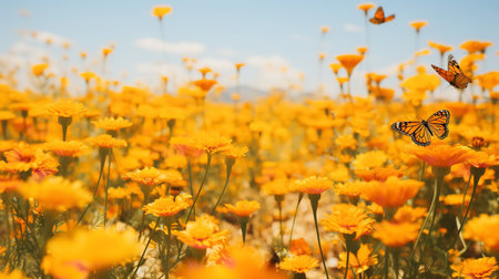 Autumn Marigold Field with Butterflies - AI Generated