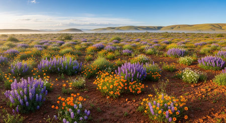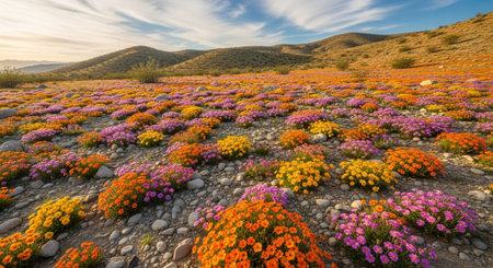 Vibrant wildflowers bloom in barren landscape adding color and life