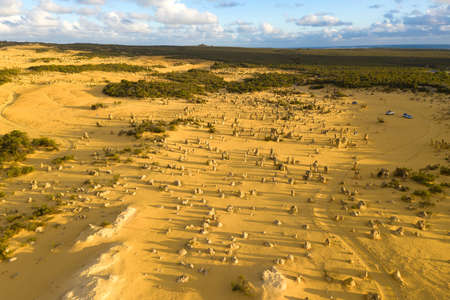 Wild landscape view of the pinnacles desert near Perth in Western Australia. The desert contain thousands of limestone formations called pinnacles