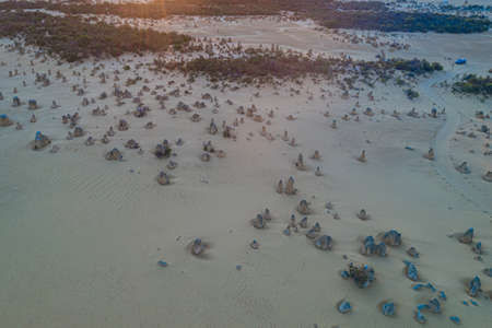 An overview of part of the Pinnacles Desert in the heart of the Nambung National Park, Western Australia.