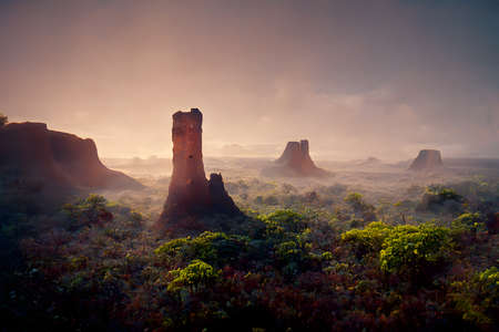 monument valley covered with green topical plants, neural network generated art