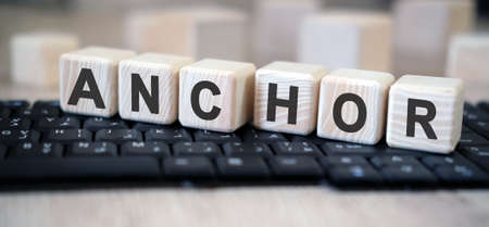 Anchor - text cubes stand on a black keyboard on a wooden table