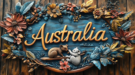 This colorful sign features three koalas enjoying a beautiful sunset in the Australian outback