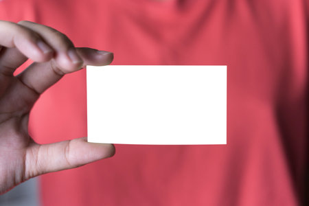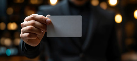A close-up image of a hand holding a blank white card in an inviting indoor space, creating a minimalistic background that emphasizes creativity and identity concepts.