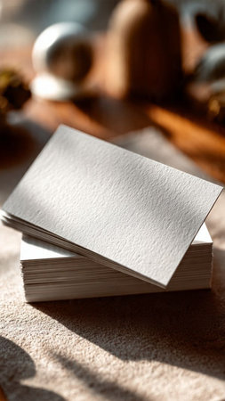 A closeup of a plain white card held in a hand, set against a textured cobblestone background. The image conveys simplicity and minimal design, perfect for identity concepts.