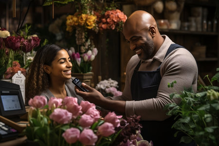 African american man paying for casual wear using mobile phone nfc on pos terminal, buying stylish clothes and accessories in clothing store. Customer shopping for trendy merchandise