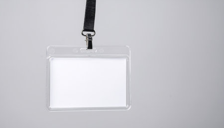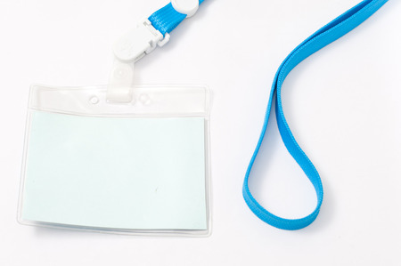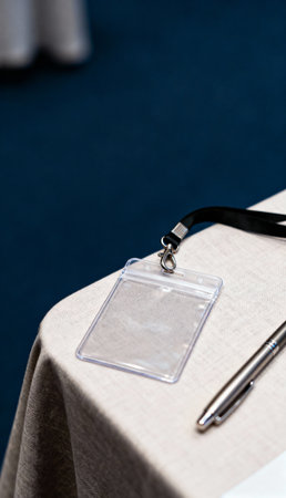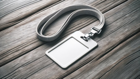 Blank name tag on a lanyard, representing corporate identity and networking.