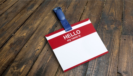 A Close up of nametag at business networking event, showcasing professionalism and connection