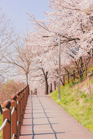 Cherry blossoms in full bloom along the road in Naju, South Korea