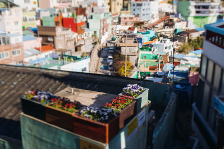 View of Gamcheon Culture village, Busan city, South Korea, Gamcheon-dong, Saha District, beautiful view of streets and multicolored houses in a summer sunny day, Republic of Korea travel