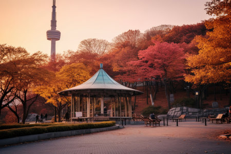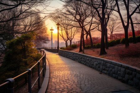This captivating image showcases the serene beauty of Namsan Park, a tranquil oasis nestled within the bustling cityscape. The park offers a refreshing retreat from the urban hustle, where nature flourishes and panoramic views captivate visitors. With its lush greenery, scenic trails, and iconic landmarks, Namsan Park is a haven for relaxation, outdoor activities, and exploration. Immerse yourself in the harmonious blend of nature and urban life in this captivating image