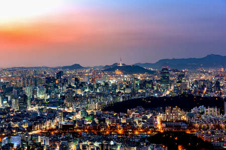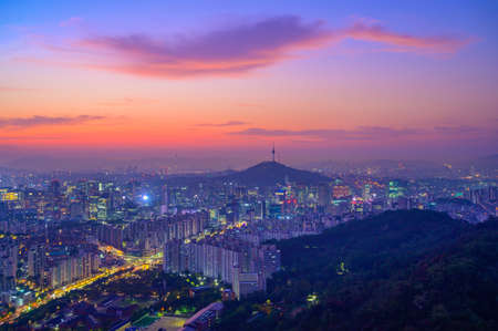 view of twilight seoul city scape and Downtown skyline in Seoul, South Korea