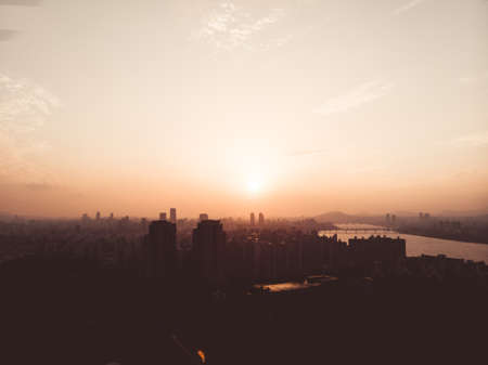 SEOUL / SOUTH KOREA - 05/09/2019: Beautiful Sunset in Seoul. Made by drone