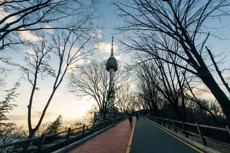 Seoul, South Korea - December 16, 2018: Park on Namsan Mountain in Seoul is very popular with residents and visitors of the capital of South Korea. Beautiful view from the top of mountain