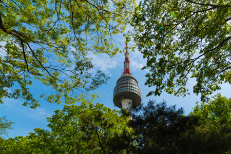 Namsan Seoul Tower, a landmark in Seoul, South Korea photographed against a clear sky during the daytime