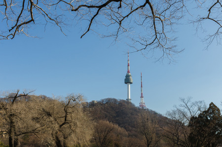 SEOUL, SOUTH KOREA march 2019 NAMSAN MOUNTAIN, N Seoul Tower With Autumn In Seoul, South Korea