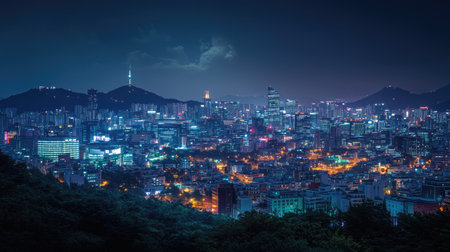 Night view of Seoul, South Korea. Panoramic view, Seoul Skyline, AI Generated